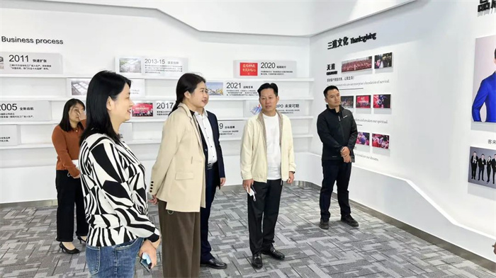 在尹董的帶領(lǐng)下,來(lái)訪的領(lǐng)導(dǎo)們來(lái)到客來(lái)福展廳的黨建文化處??蛠?lái)福家居以“幸福”為核心制定文化綱領(lǐng),積極完善各項(xiàng)設(shè)施、建立健全工作機(jī)制,一直以來(lái)推動(dòng)黨建工作與企業(yè)發(fā)展融合互促,協(xié)同進(jìn)步。