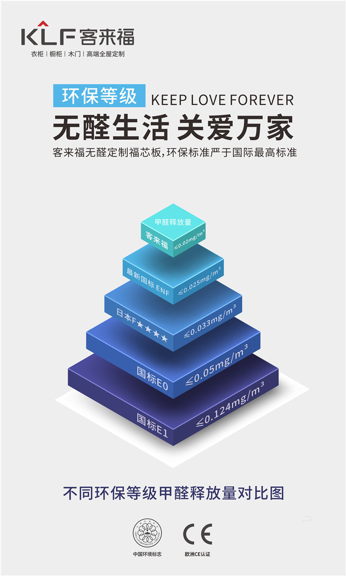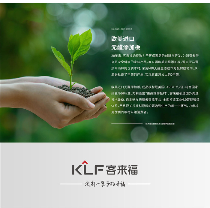 客來福家居作為國民品牌,從中國家庭需求出發(fā),一直潛心研究更環(huán)保的家居材料??蛠砀T诋a(chǎn)品的環(huán)保賽道上一直深耕,相繼推出了歐美無醛添加板、福芯板等健康產(chǎn)品。