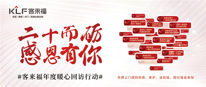 客來福家居感恩老客戶,帶著滿腔熱情與專業(yè)的服務(wù),進(jìn)行年度暖心回訪行動(dòng)。“二十而礪,感恩有你”,客來福家居創(chuàng)立二十年之際,將為更多家人們免費(fèi)提供產(chǎn)品檢查、維護(hù)、調(diào)試、保養(yǎng)等服務(wù),煥新家居空間,還原生活本色。