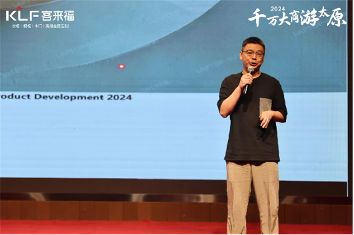 尹董指出,面對市場低品質(zhì)價格內(nèi)卷現(xiàn)狀,要?敢于破局,堅持以輕高定方向為主的產(chǎn)品創(chuàng)新,繼續(xù)以水漆爆品為發(fā)力點進行反內(nèi)卷探索。在現(xiàn)場,尹董為與會者解讀營銷重構(gòu),結(jié)合案例進行抖音渠道分析。他指出,在自媒體營銷時代,客來福必須緊跟潮流,抓住機遇,從單一的地面營銷變成雙網(wǎng)營銷,利用短視頻打造流量矩陣,做好品牌宣傳。